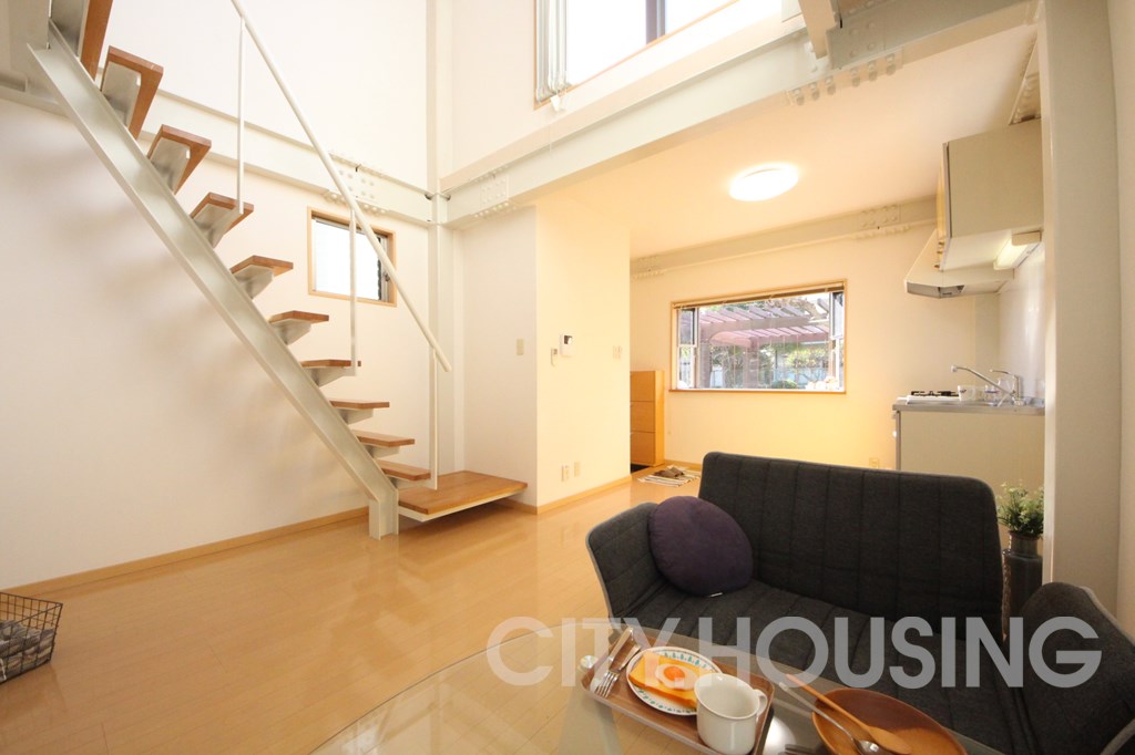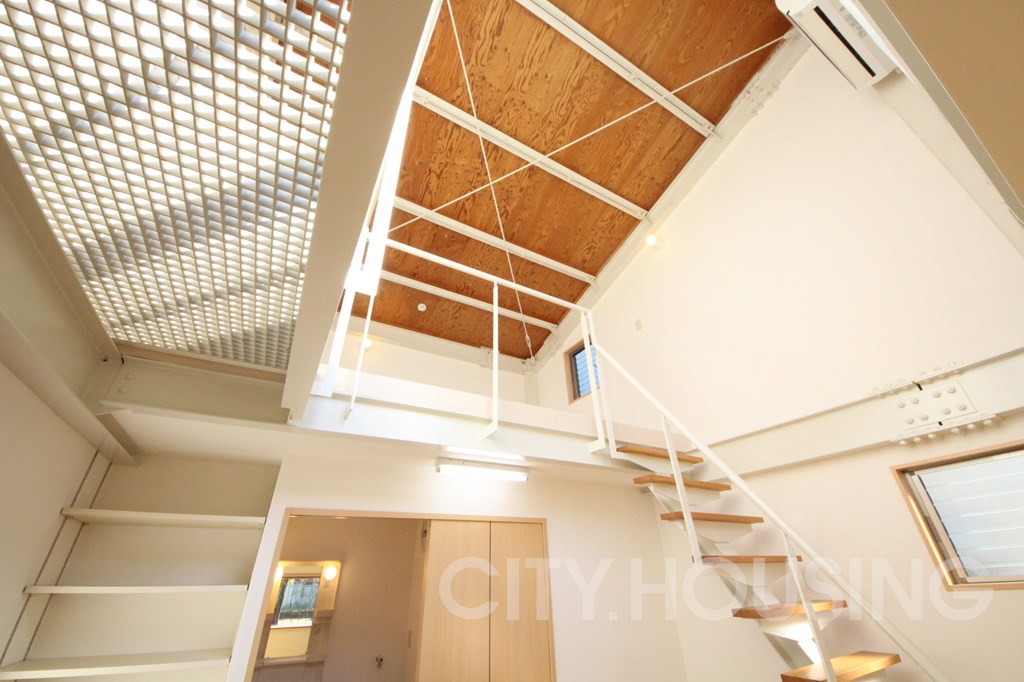 バストイレ別、エアコン[ 1基 ]、フローリング、ベランダバルコニー、角部屋、ロフト、脱衣所、洗髪洗面台、モニタ付インターホン、ガス調理器具[ 2ヶ口 ]、給湯[ LPガス ]、室内洗濯機置き場、CATV(基本ch)、デザイナーズ