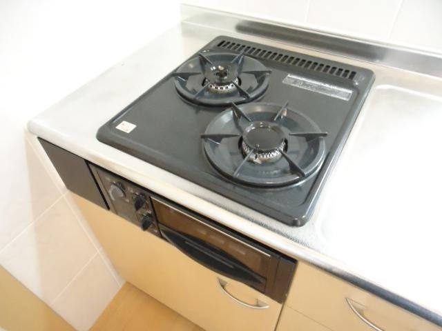 バストイレ別、室内洗濯機置き場、エアコン[ 2基 ]、ベランダバルコニー、下駄箱、脱衣所、洗髪洗面台、照明器具、室内物干し、温水洗浄便座、暖房便座、浴室内乾燥機、システムキッチン、対面式キッチン、給湯[ LPガス ]、ガス調理器具[ 2ヶ口 ]、CATV(基本ch)、モニタ付インターホン、調理器具