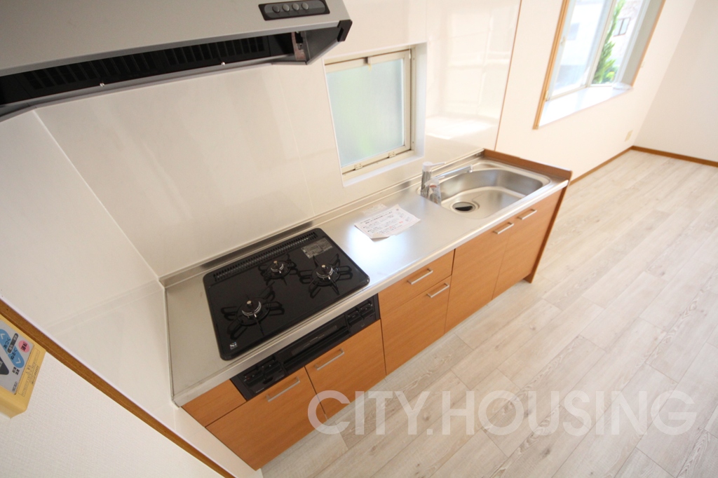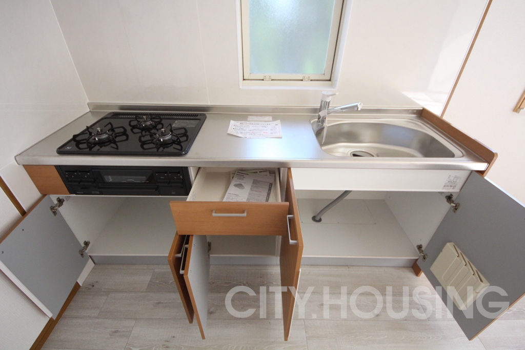 ガス調理器具付きのキッチンは、洗い場や調理スペースも広く、お料理を快適に楽しんでいただけそうです。