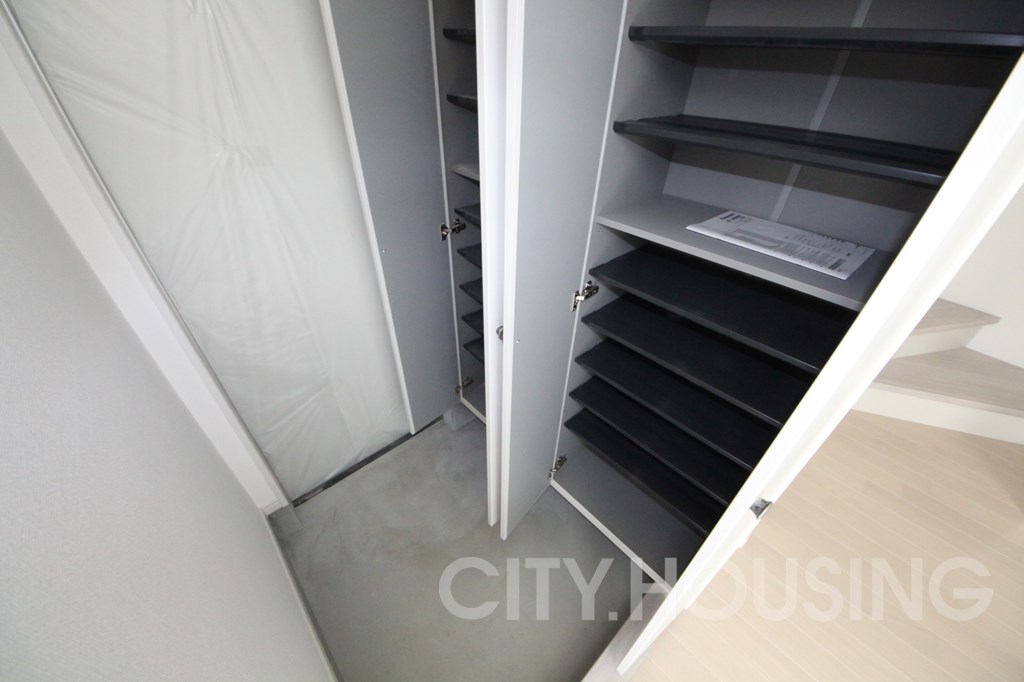 少し変わった間取りで1階と2階の間に広めの収納スペースがあります。