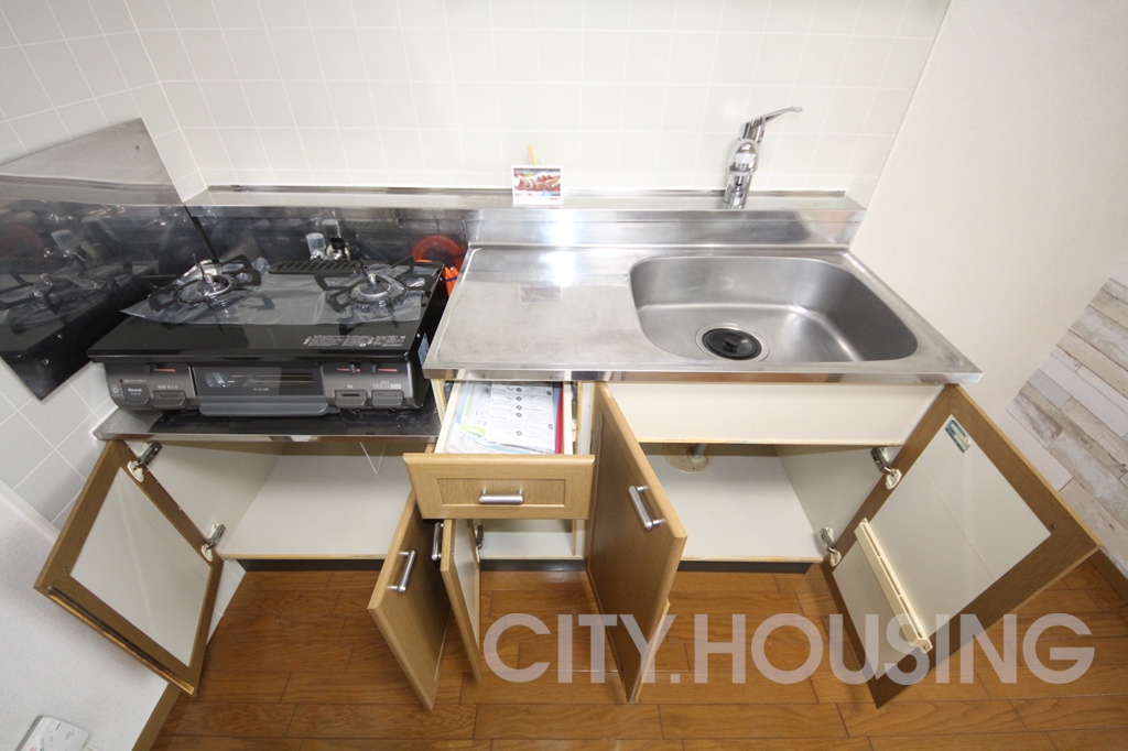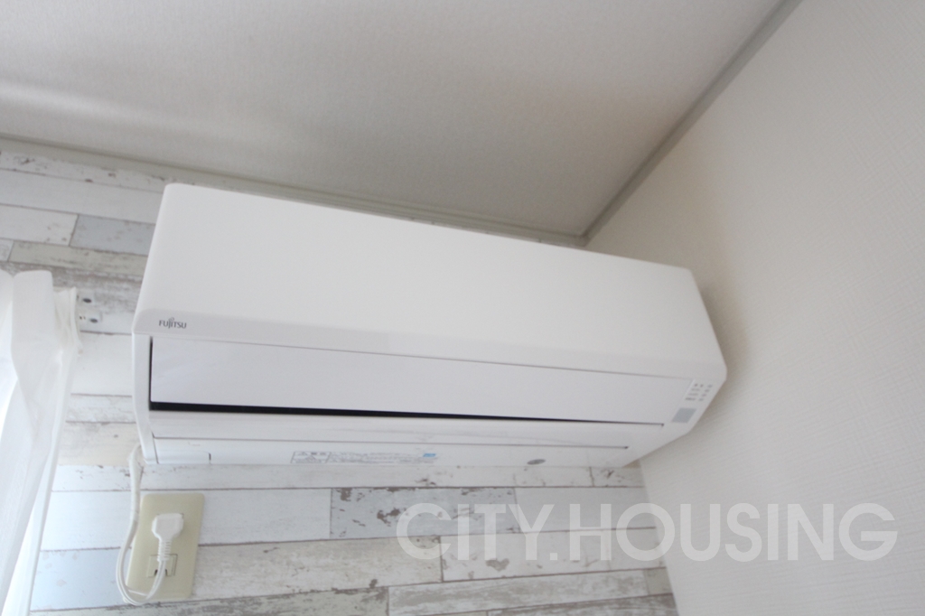 バストイレ別、室内洗濯機置き場、フローリング、ベランダバルコニー、下駄箱、脱衣所、室内物干し、温水洗浄便座、暖房便座、給湯[ LPガス ]、CATV(基本ch)、モニタ付インターホン、エアコン[ 1基 ]、照明器具、ガス調理器具、駐輪場、光インターネット[Pikara]