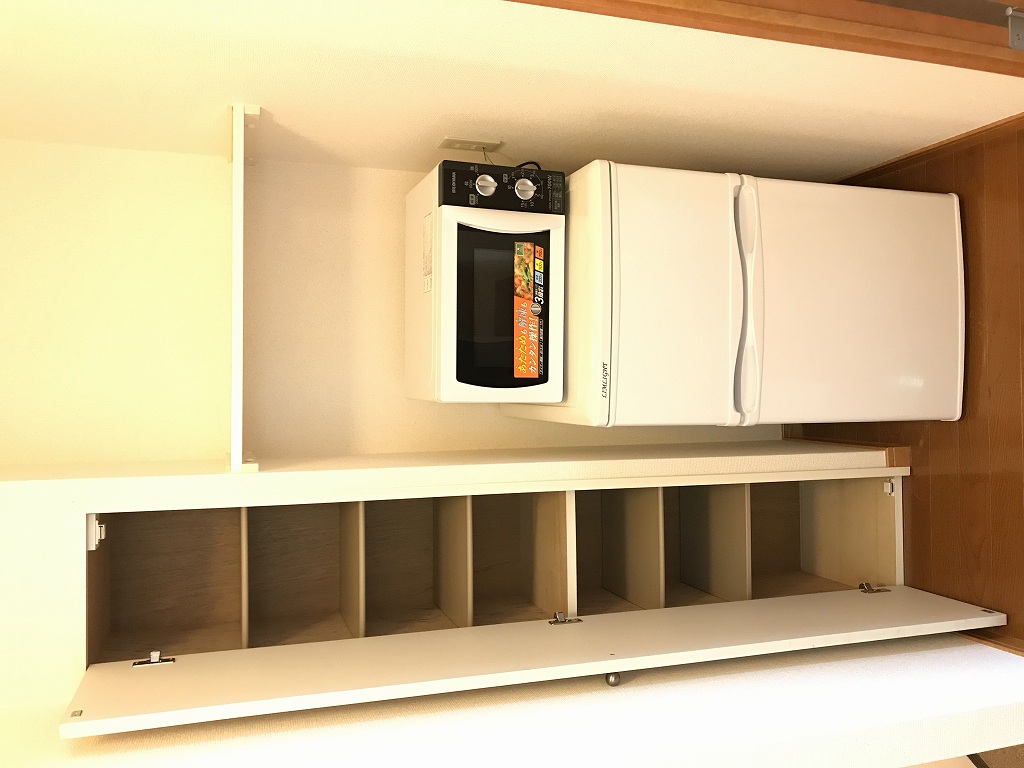 バストイレ別、照明器具、調理器具、エアコン[ 1基 ]、下駄箱、浴室内乾燥機、給湯[ LPガス ]、IH調理器具[ 2ヶ口 ]、CATV(基本ch)、室内洗濯機置き場、冷蔵庫、洗濯機、カーテン、電子レンジ、テレビ、ベッド、テーブル、チェア