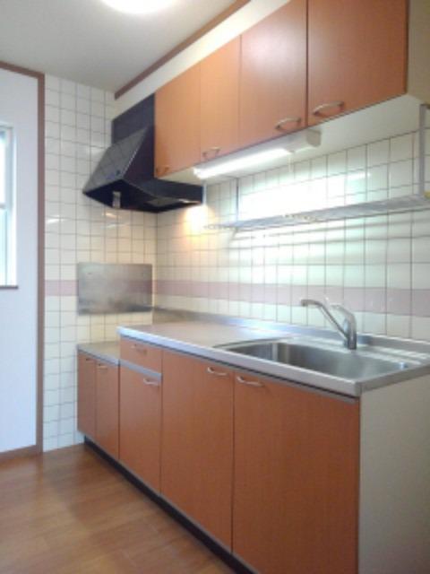 バストイレ別、室内洗濯機置き場、エアコン[ 2基 ]、フローリング、南向き、下駄箱、洗髪洗面台、床下収納、温水洗浄便座、給湯[ LPガス ]、ガスコンロ対応、CATV(基本ch)、モニタ付インターホン、ベランダバルコニー、脱衣所、対面式キッチン、駐輪場、防犯カメラ