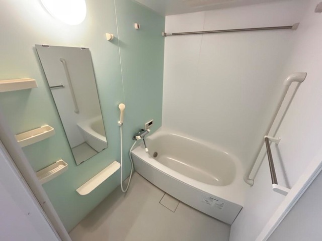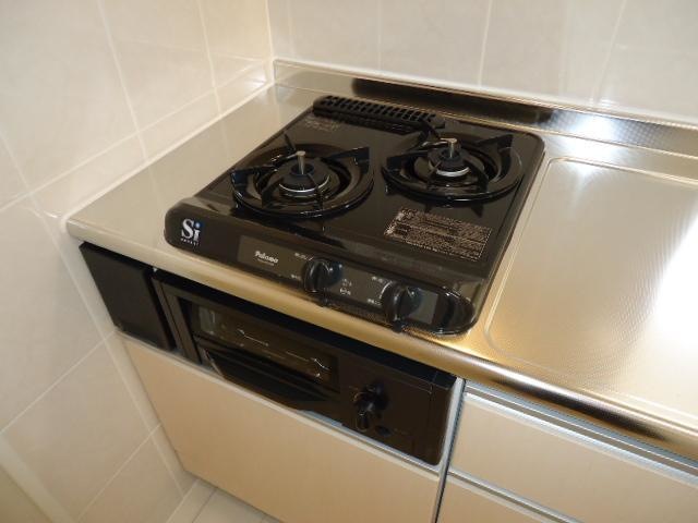バストイレ別、室内洗濯機置き場、CATV(基本ch)、エアコン[ 1基 ]、フローリング、ベランダバルコニー、下駄箱、脱衣所、洗髪洗面台、照明器具、自動湯はり、追い焚き機能、温水洗浄便座、浴室内乾燥機、対面式キッチン、給湯[ LPガス ]、ガス調理器具[ 2ヶ口 ]、モニタ付インターホン、床下収納、システムキッチン、駐輪場、光インターネット[フレッツ光]
