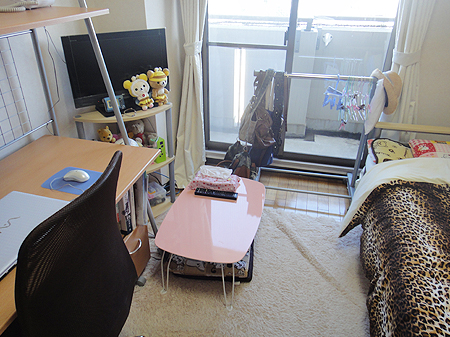 Q.この部屋で工夫している所は?A.はやりのヒョウ柄をベットに使用することで甘すぎない部屋作り
