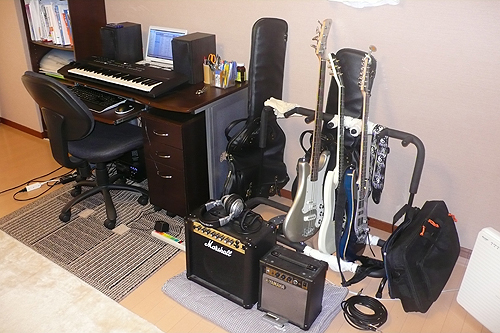音楽と共に暮らす部屋。きれいに整理された部屋に楽器が揃ってます。大好きなものと過ごせる快適なお部屋に仕上がってます。